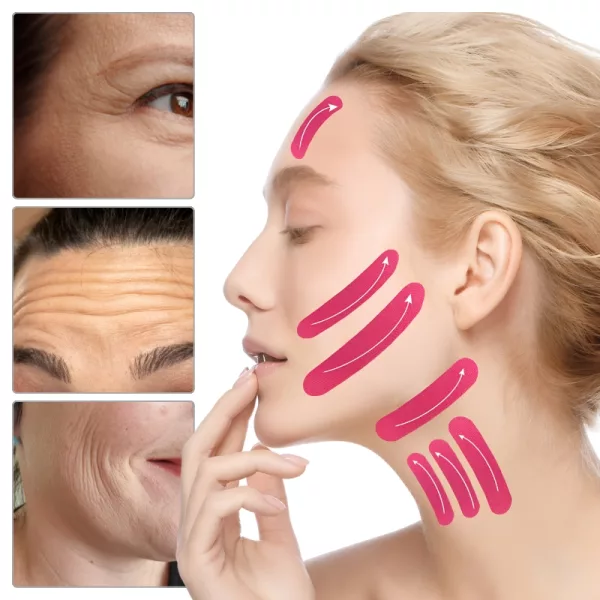 Estompez les ridules et raffermissez la peau naturellement avec notre ruban de kinésiologie. Vous remarquerez une apparence plus fraîche et plus jeune après seulement quelques utilisations. Vous pouvez l'appliquer avant de dormir ou dans le cadre de votre routine matinale pour de meilleurs résultats. Révélez une peau plus lisse et boostez votre confiance en vous !