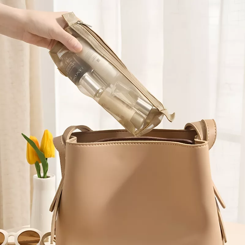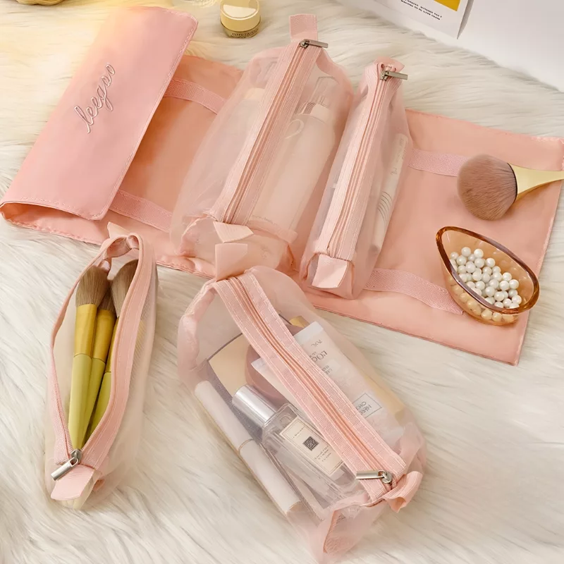 Vous pouvez facilement voir ce qu'il y a dans chaque pochette de notre trousse de toilette. Vous pouvez trouver les produits souhaités sans avoir à ouvrir chacun d'eux.