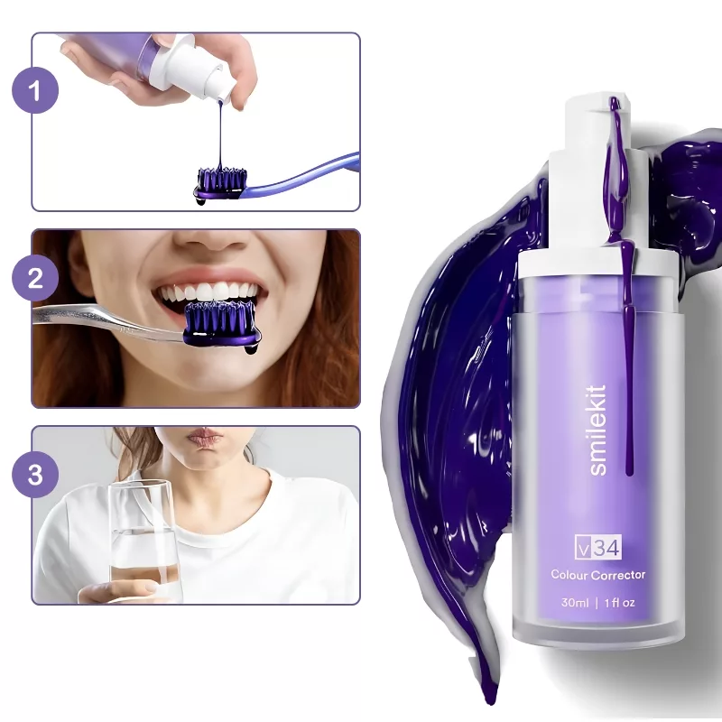 Obtenez un sourire visiblement plus blanc après seulement quelques utilisations de notre dentifrice violet. Il aide à neutraliser les tons jaunes sans produits chimiques agressifs. Il est sans danger pour l'émail, ce qui le rend adapté à un usage quotidien.